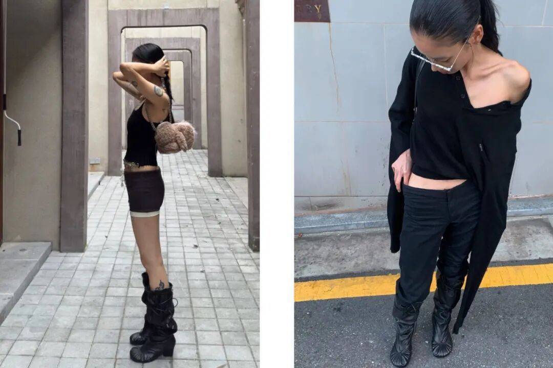 这一风格融合了工业美学与实用主义。选择一双带有复杂绑带、金属扣环或耐磨橡胶厚底的机车靴,奠定硬核基础。搭配皮革外套与紧身裤,营造丰富的层次。色彩以黑、灰为主,材质强调皮革或尼龙与金属的碰撞。整体造型如同科幻片中的主角,充满动态的防护感与冷静的未来气质。