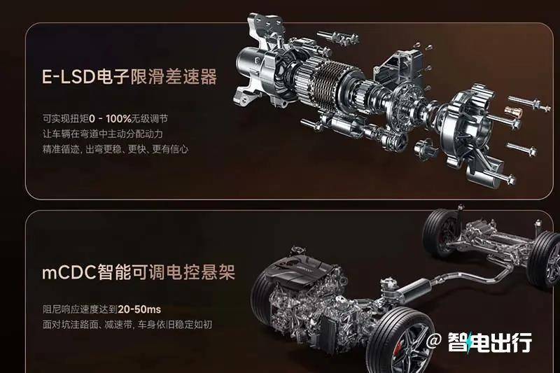最后说操控,这也是MG7的宣传重点。底盘采用前麦弗逊+后多连杆独立悬架,顶配车型依旧搭载了mCDC智能可调悬架和E-LSD电子限滑差速器,这可是MG7操控的灵魂所在。要我说,追求运动操控的就得干高功率顶配版本,低功率买个“运动风味”车多没意思。