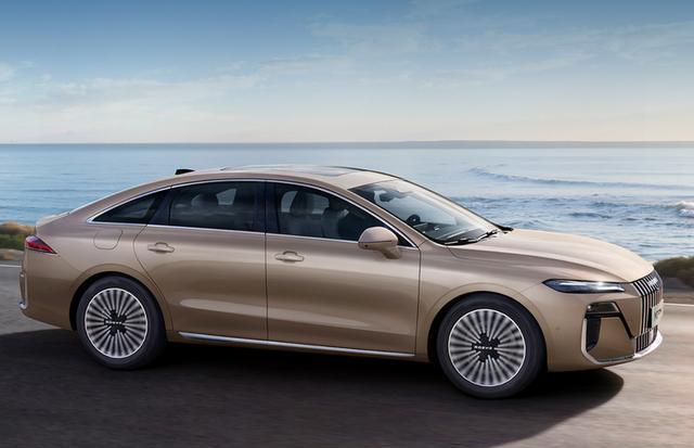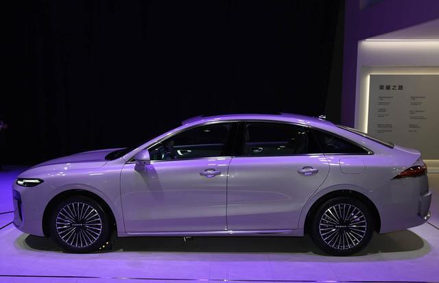不过和前脸的大气相比,荣威M7 DMH的侧面、尾部颜值就稍显一般了,车辆并没有完全沿用行政级轿车的设计风格,而且融入了运动化元素,比如尾部经过了大幅度溜背处理,配备有贯穿式尾灯,整体看着颇为圆润,这样的造型可能会不太符合部分用户的心理预期。