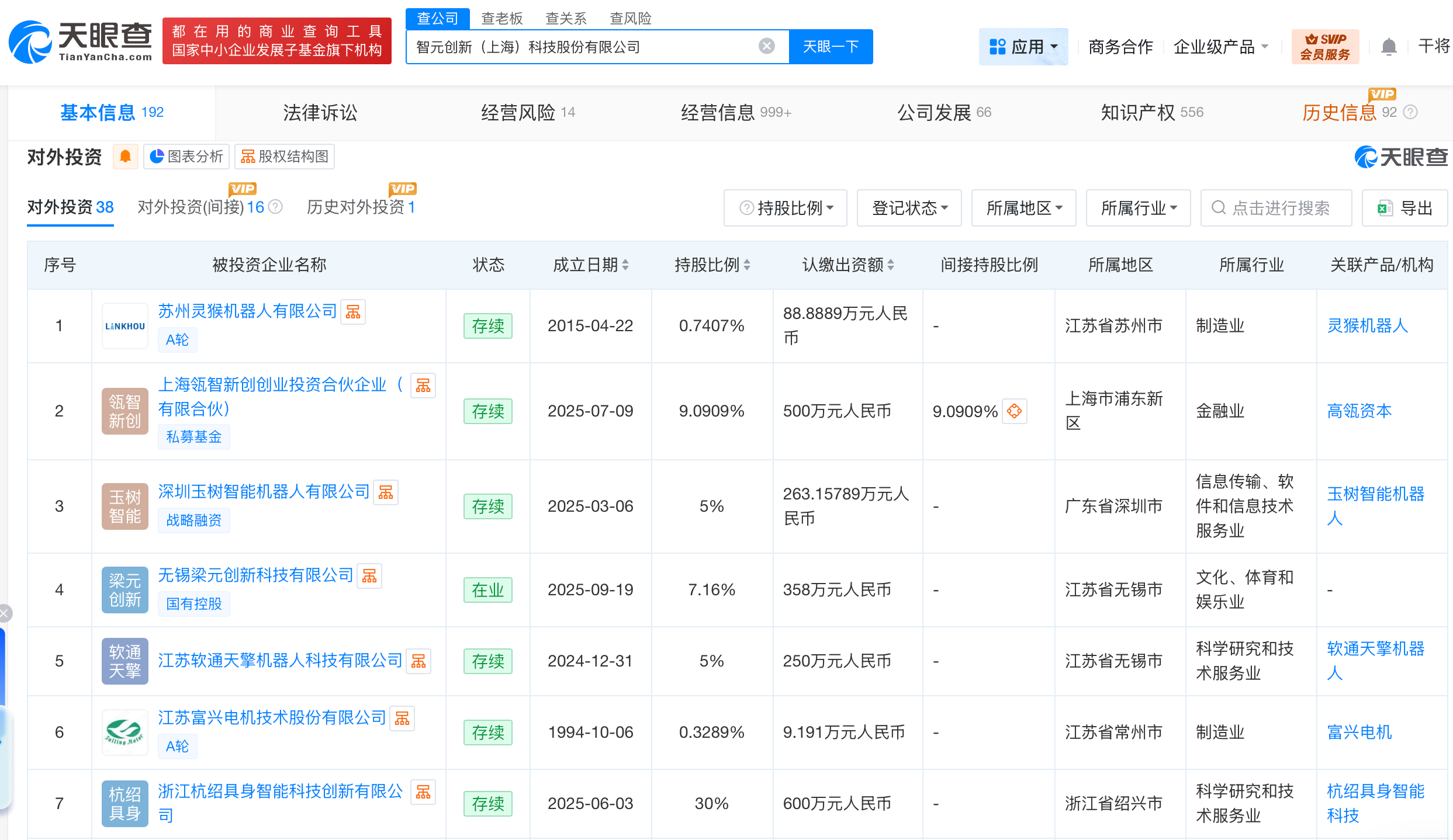 当然,上纬新材也很有可能只是智元机器人的一次投资,毕竟,该初创公司近年来已出手多次,投资版图愈扩愈大。天眼查显示,智元机器人截至目前共有38起对外投资,标的包括苏州灵猴机器人、上海瓴智新创创业、深圳玉树智能机器人、无锡梁元创新科技、江苏软通天擎机器人、江苏富兴电机技术、广州立智感知科技等。